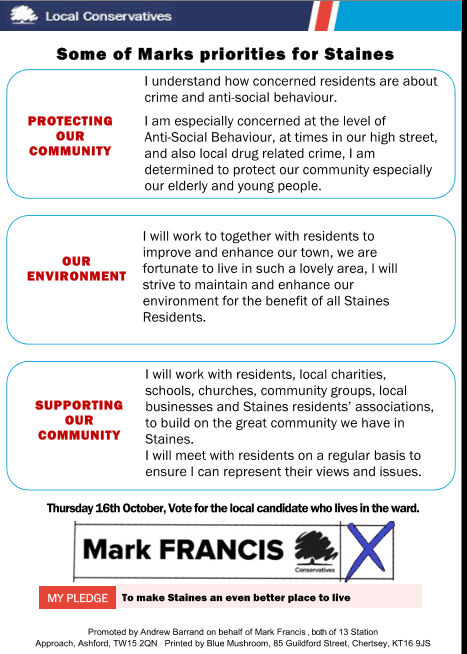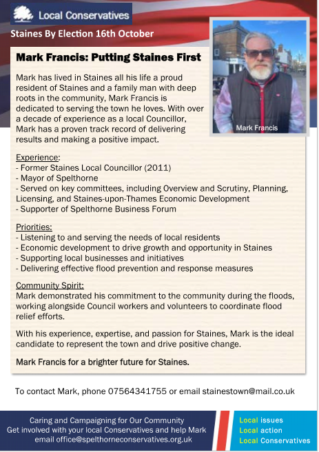 Staines Council By-Election Thursday 16th October 2025 - Vote MARK FRANCIS
